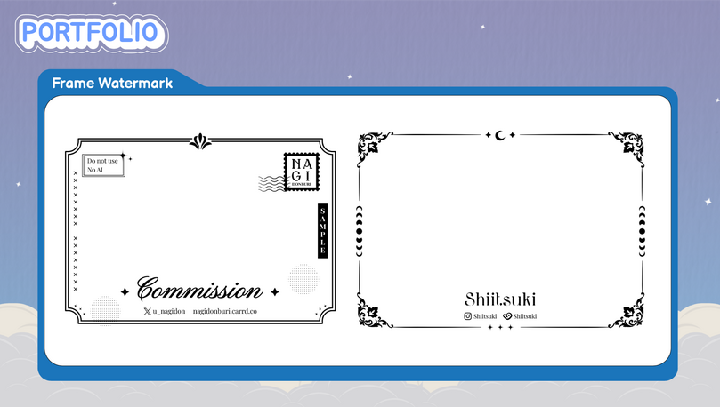 For simple logo and watermark frame commission will be done for 1-2 weeks when it is the client's turn (can be checked on trello for client's turn). If more than that time, I will contact the client if there is a delay in the process.